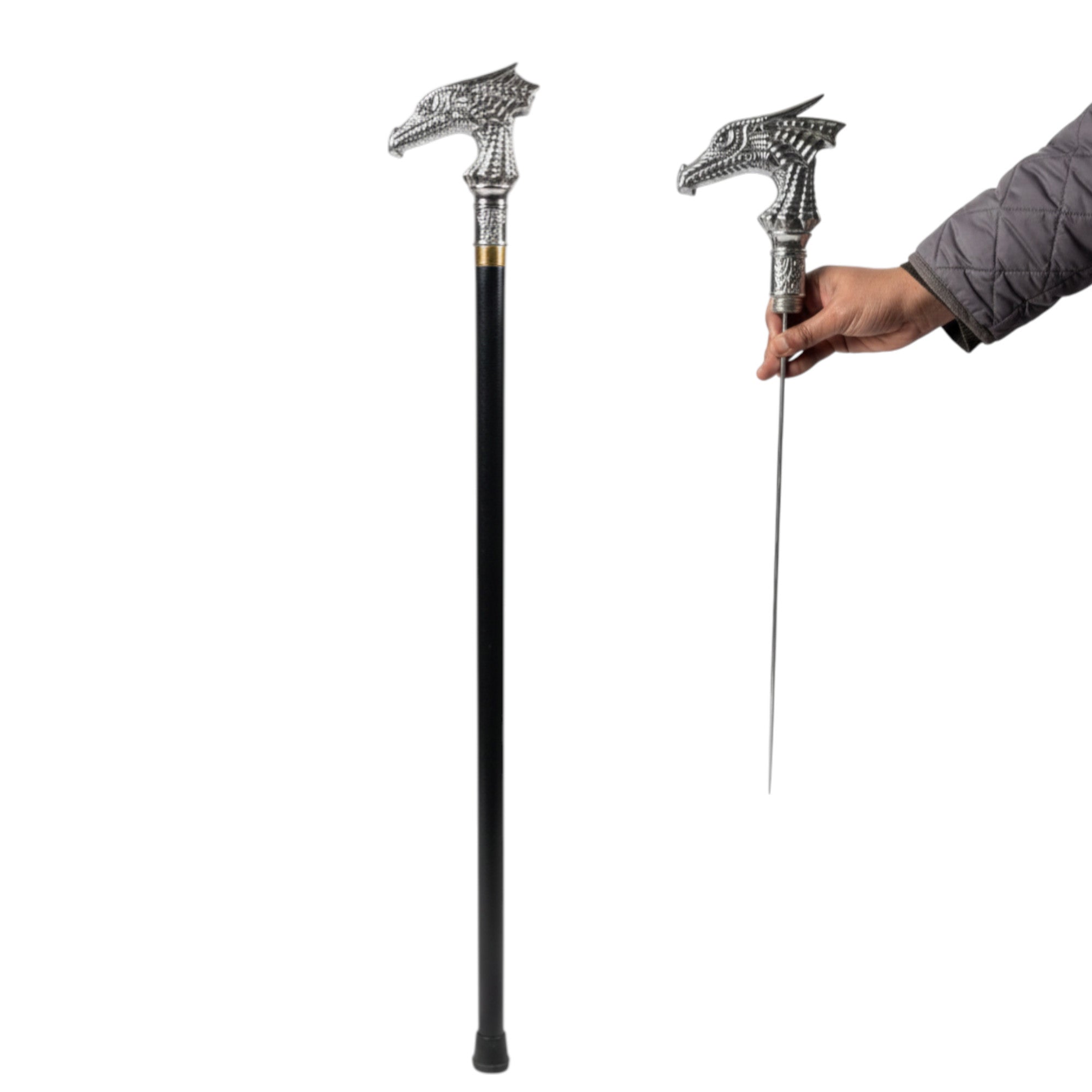 - This walking cane features an awesome pistol. 37" overall with a 16" hidden sword inside