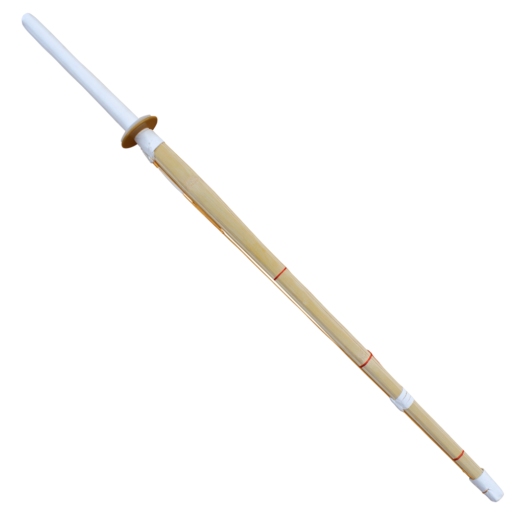 This sword is perfect for practicing Japanese sword techniques, the staggered bamboo limbs are perfect for reducing impacts and bruising when practicing strikes. The sword has a black ribbon that wraps the handle. The guard is black and the blade is a reinforced natural wood bamboo. This sword is perfect for sword playing or sparring. Get this ideal training weapon today.